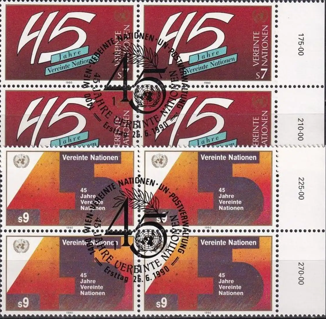UNO WIEN 1990 Mi-Nr. 104/05 Viererblocks o used - aus Abo