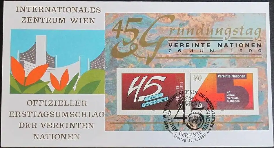 UNO WIEN 1990 Mi-Nr. Block 5 FDC