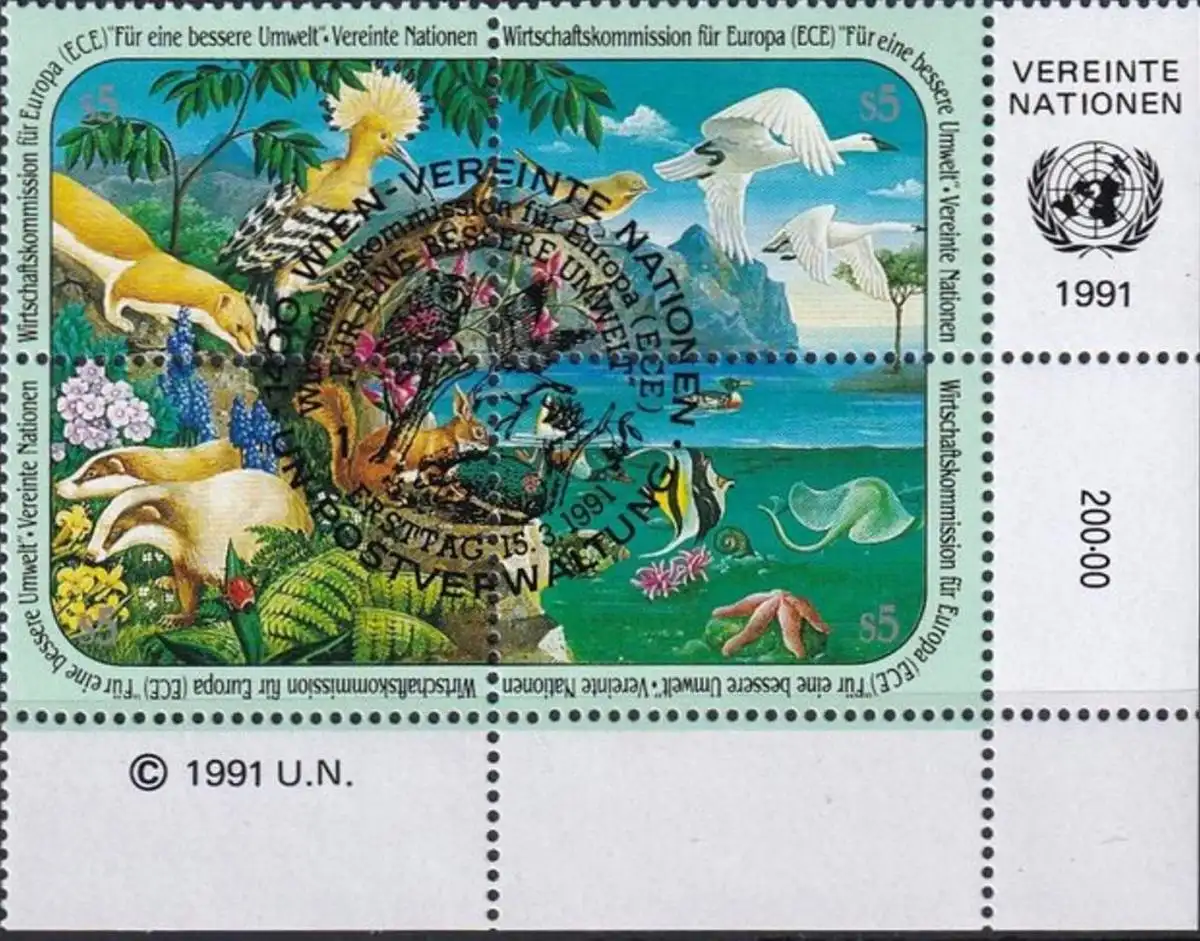 UNO WIEN 1991 Mi-Nr. 110/13 Viererblock o used - aus Abo