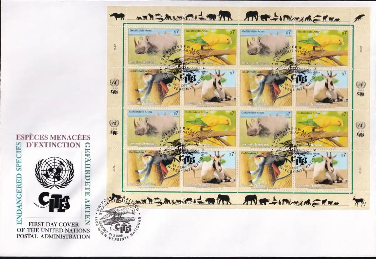 UNO WIEN 1995 Mi-Nr. 180/83 FDC Kleinbogen gefährdete Arten