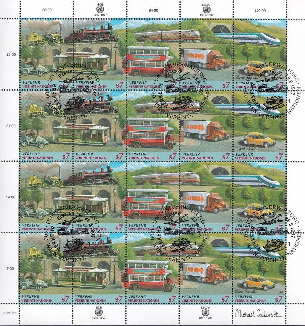 UNO WIEN 1997 Mi-Nr. 231/35 Kleinbogen o used - aus Abo