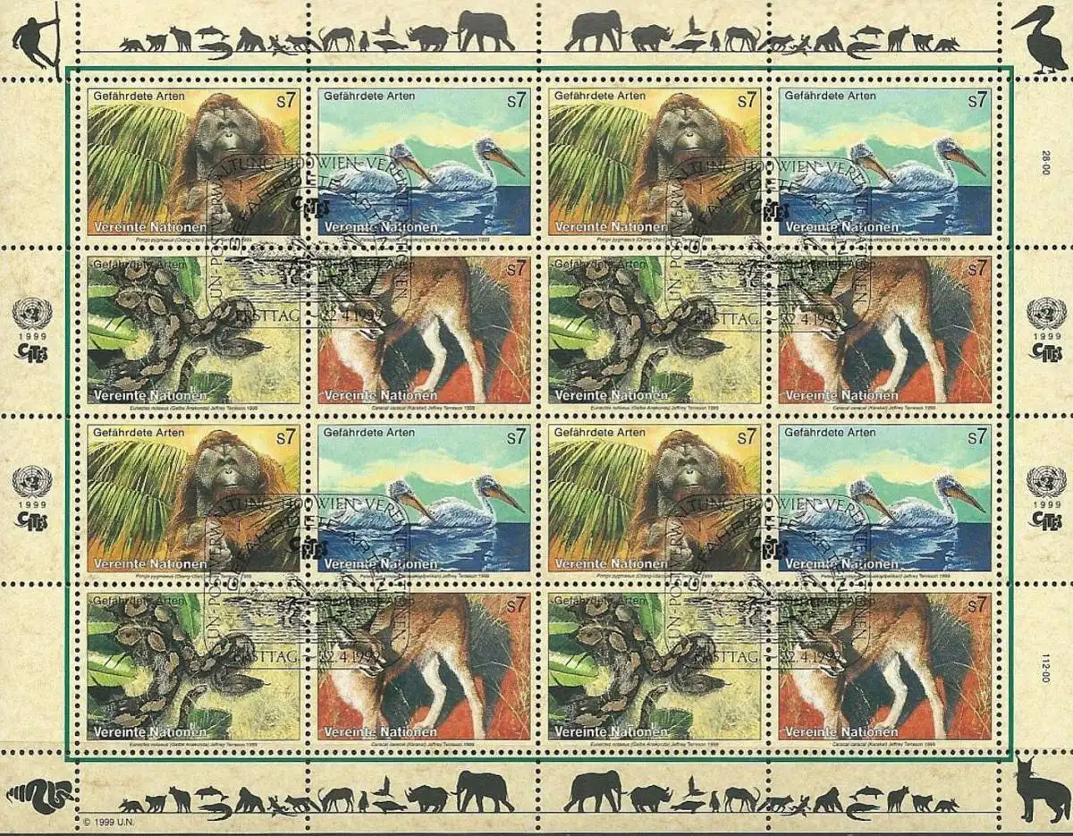UNO WIEN 1999 Mi-Nr. 287/90 Kleinbogen o used - aus Abo