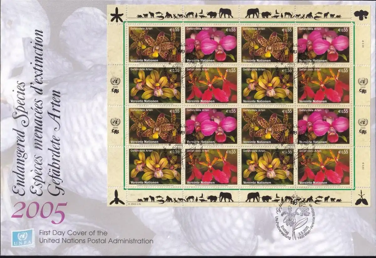 UNO WIEN 2005 Mi-Nr. 435/38 FDC Kleinbogen gefährdete Arten