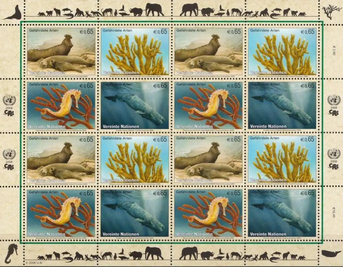 UNO WIEN 2008 Mi-Nr. 526/29 Kleinbogen gefährdete Arten ** MNH