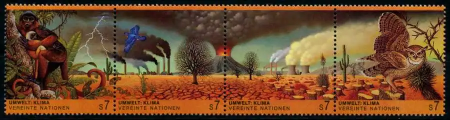 UNO Klimaveränderungen durch Umweltverschmutzung, 4er Streifen (MichelNr.: 156, 157, 158, 159)