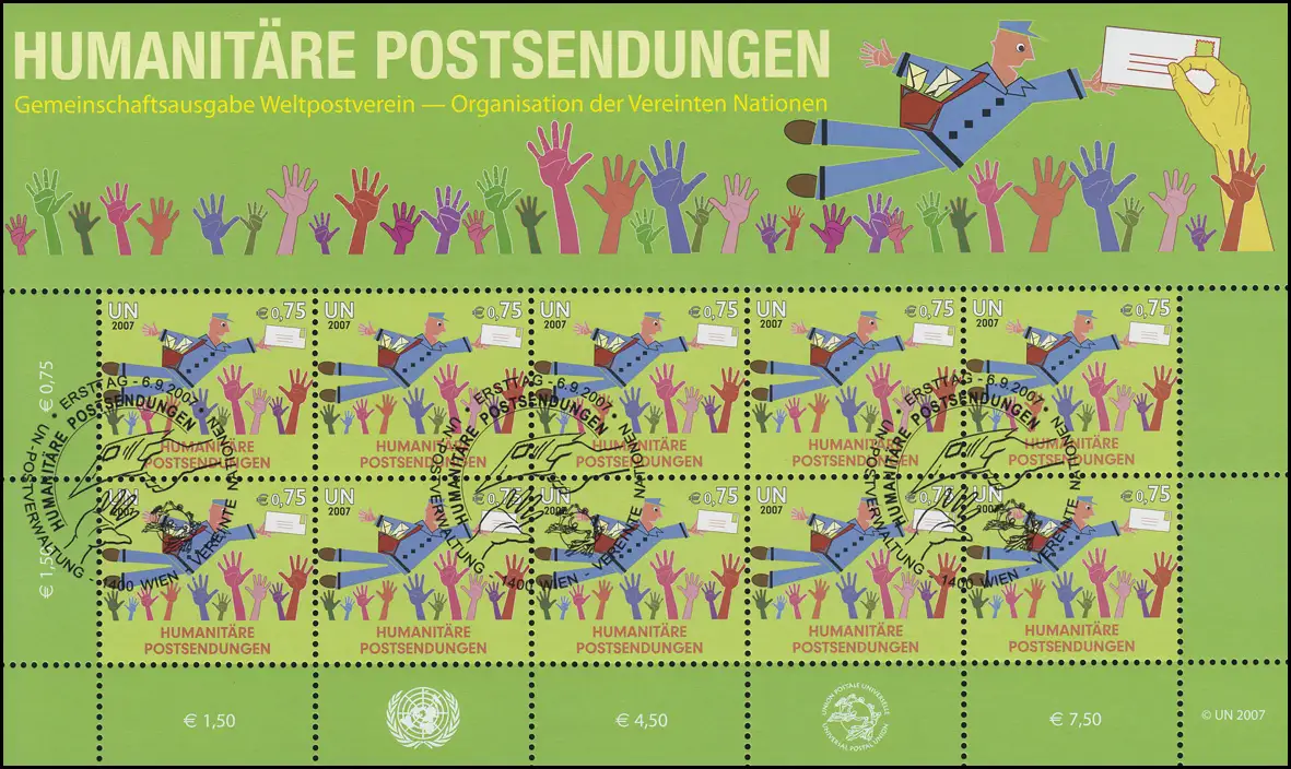 UNO Wien 512 Humanitäre Postsendungen 2007, Kleinbogen ESSt