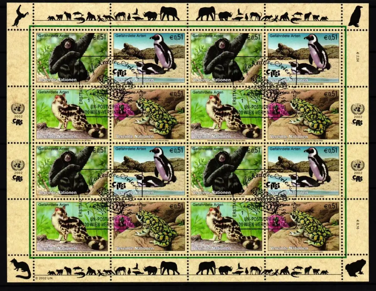 UNO Wien ZD-Bogen 357-360 gestempelt gefährdete Tierarten #GW794