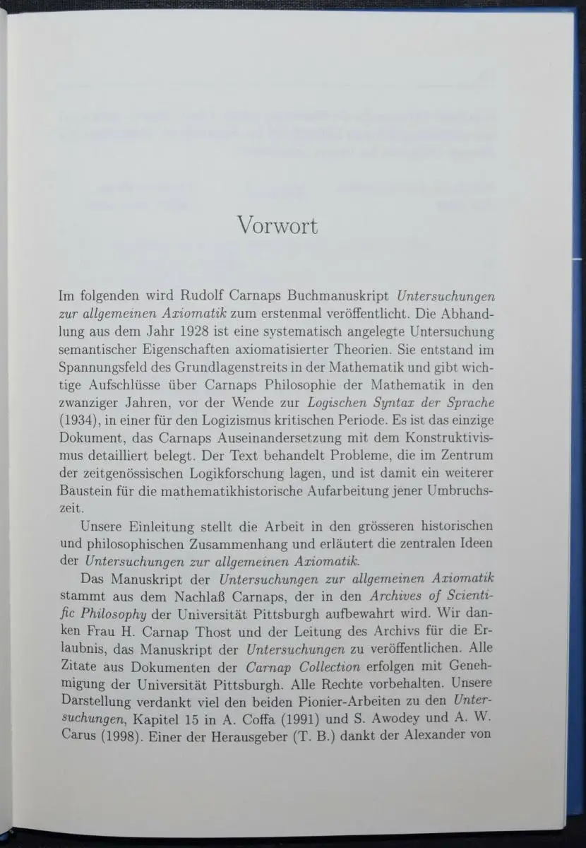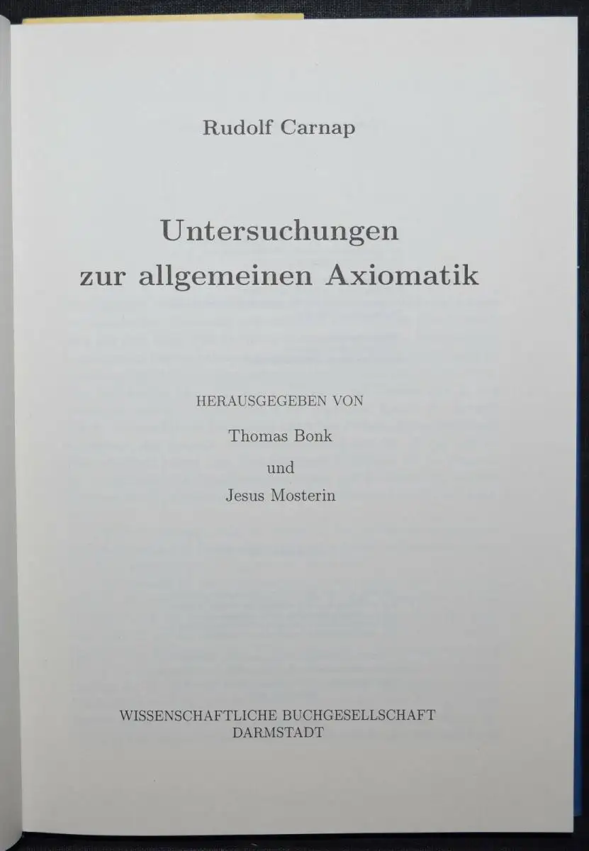 UNTERSUCHUNGEN ZUR ALLGEMEINEN AXIOMATIK - RUDOLF CARNAP MATHEMATIK AXIOME