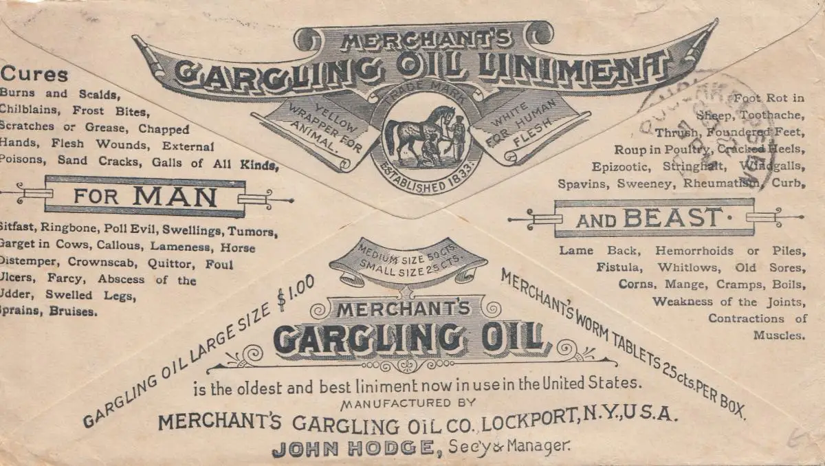 USA 1894: Roxbury Sta. Mass. to Poughkeepsie, Gargling Oil Liniment