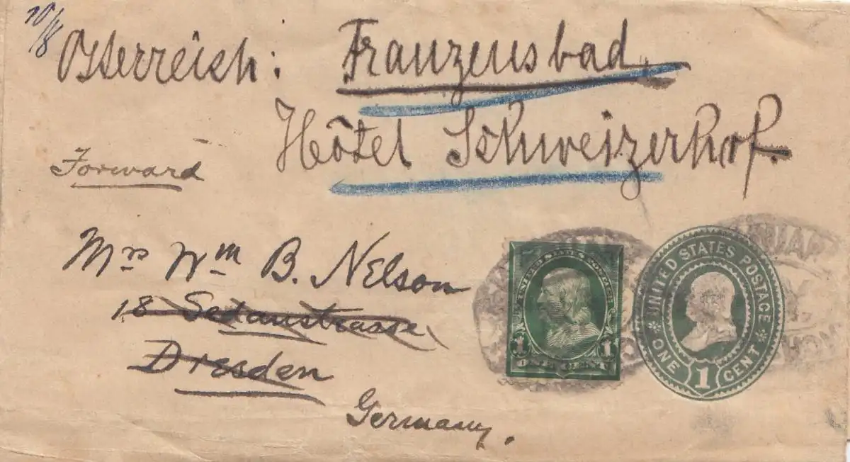 USA 1900: letter to Dresden/Germany forwarded to Franzensbad/Austria