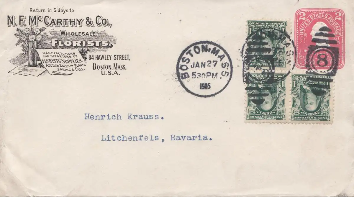 USA 1905: Boston, Mass to Litchenfels/Germany, Florists