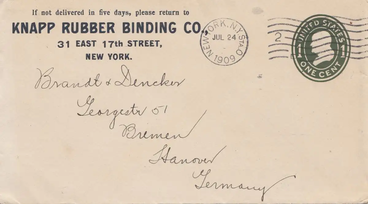 USA 1909: New York to Hannover/Germany, Rubber