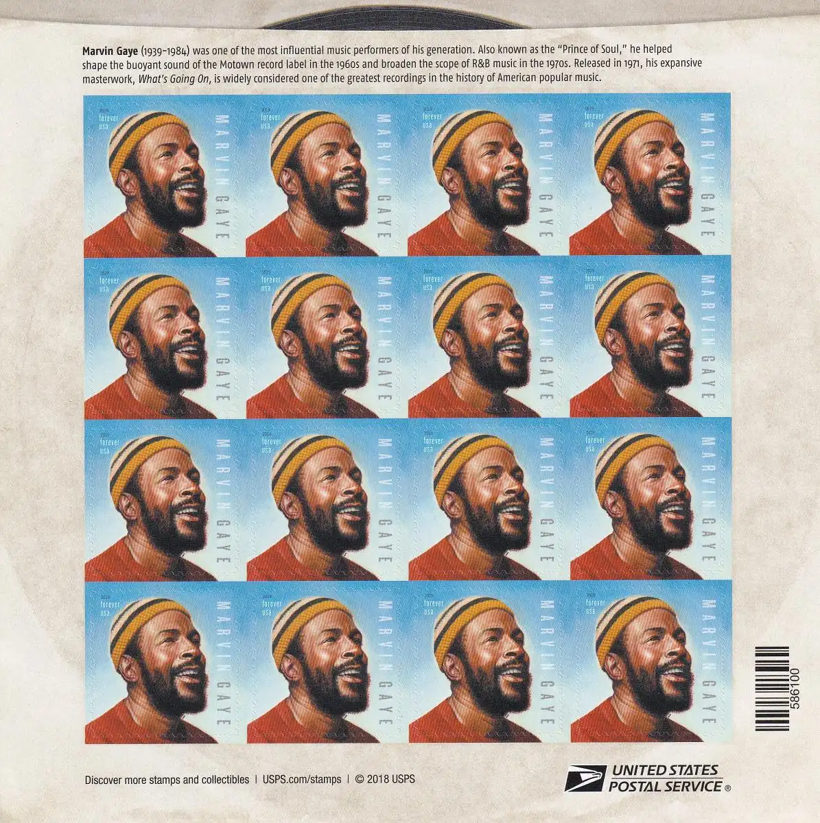 USA 2019 MARVIN GAYE 55c/ BOGEN ZU 20, NOMINAL US $ 11