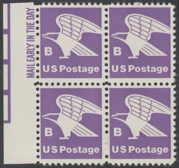 USA Michel 1457A / Scott 1818 postfrisch BLOCK RÄNDER links m/ Mail Early-Vermerk - Adler, Emblem der US-Post