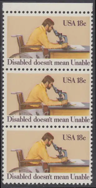 USA Michel 1497 / Scott 1925 postfrisch vert.STRIP(3) RAND oben - Internationales Jahr der Behinderten