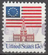 Freimarke: Flagge und Unabhängigkeitshalle: Altes Sternenbanner und Unabhängigkeitshalle, Philadelphia