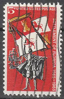 400. Jahrestag der Besiedelung von Florida: Gründung von St. Augustine: Spanischer Eroberer, Flagge und Segelschiff (16. Jh.)