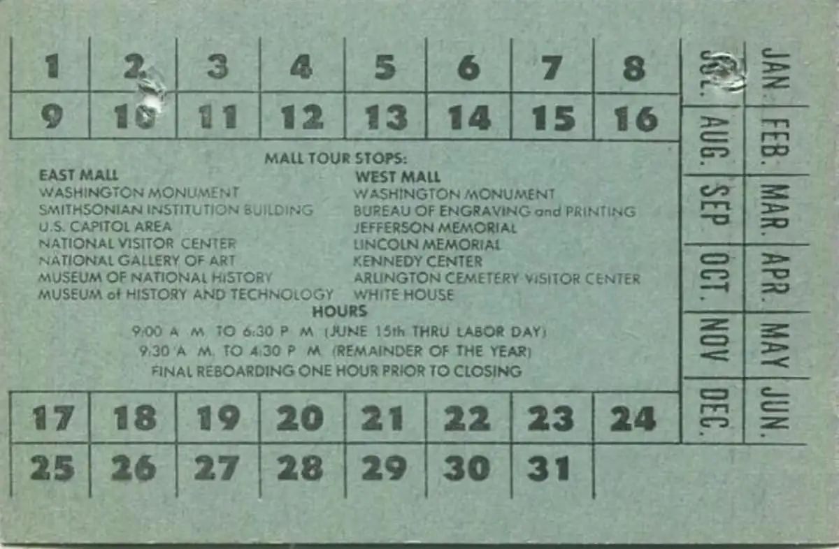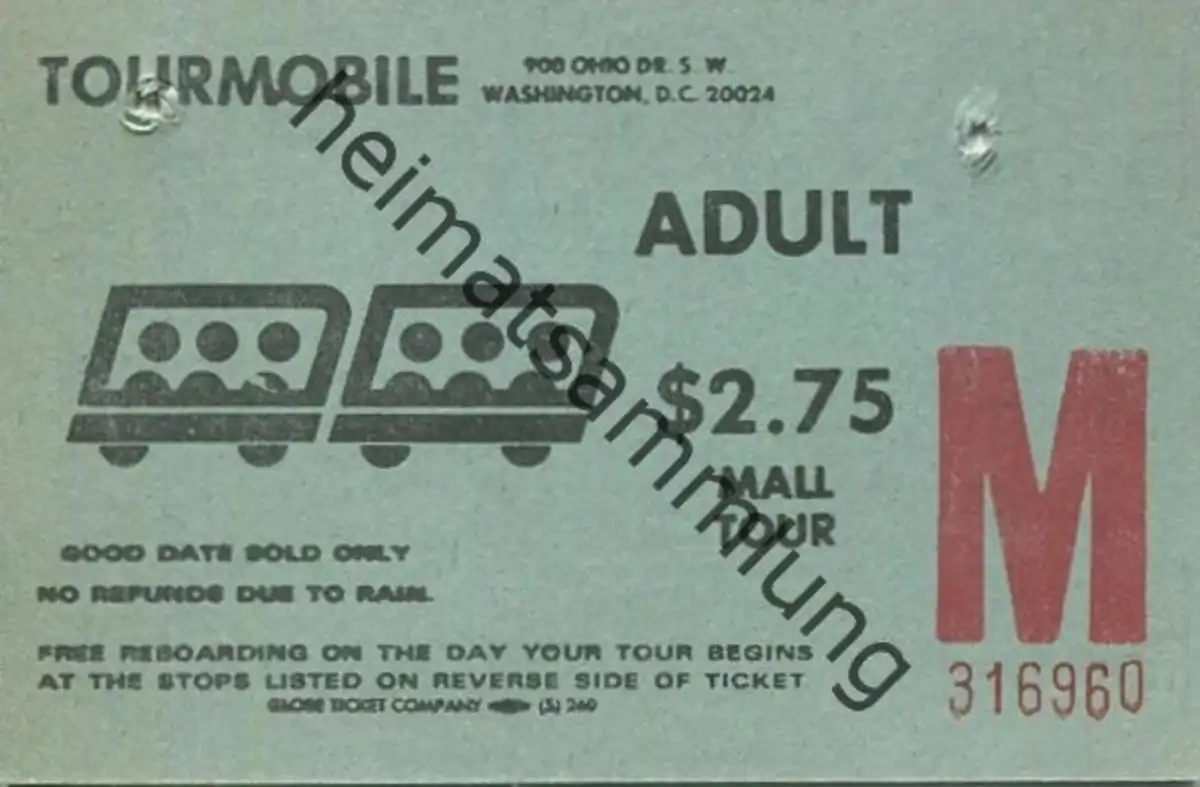 USA - Washington - Tourmobile - Mall Tour - Fahrkarte $ 2.75