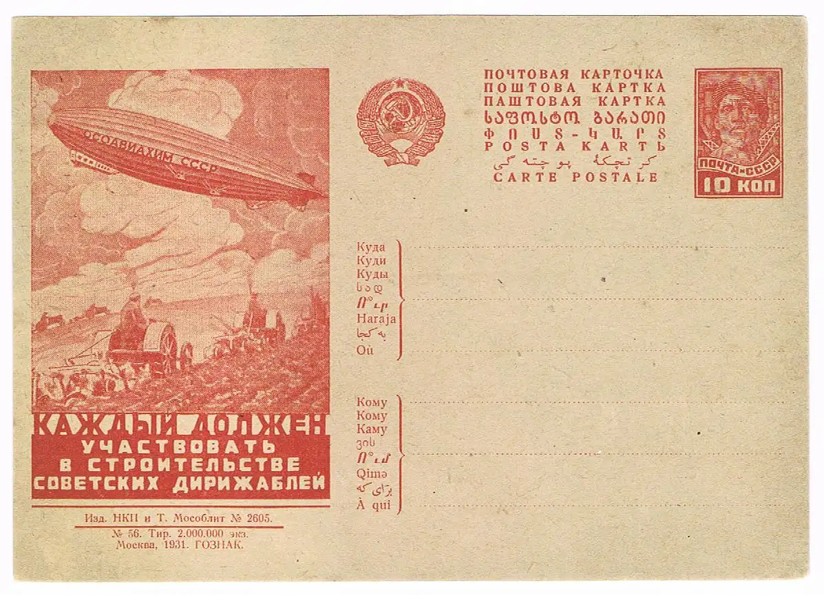 UdSSR: Ganzsache mit Luftschiff-Motiv