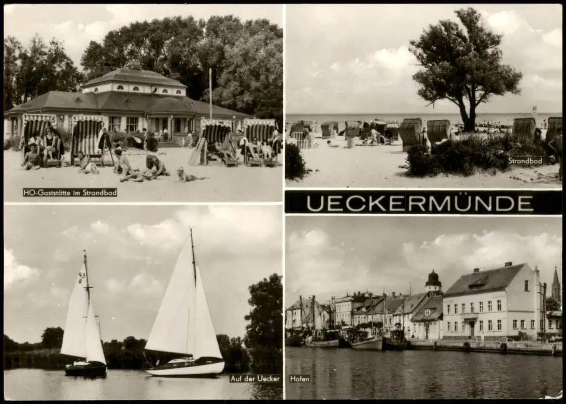 Ueckermünde Gaststätte, Strandbad, Hafen, Segelboote b Greifswald 1973