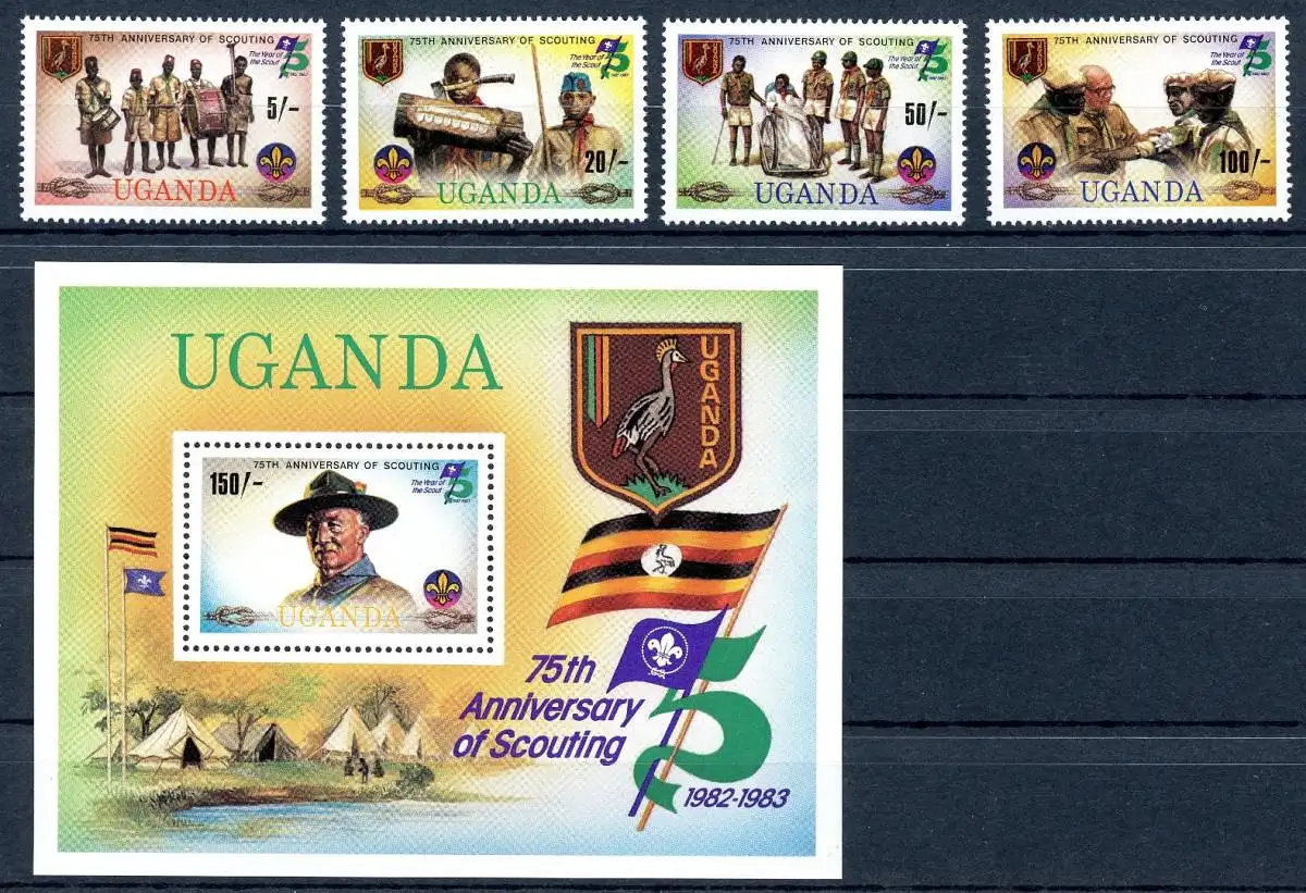 Uganda 338-341 + Block 36 postfrisch Pfadfinder #IU882