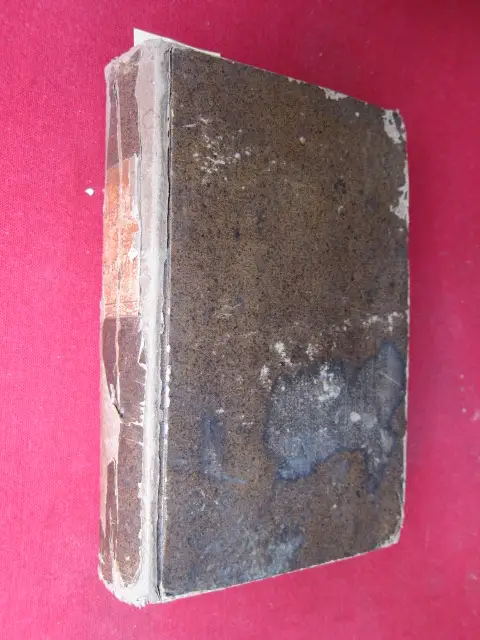 Bestoßenes u. beschabtes Exemplar, vord. Vors. entfernt, Rücken m. Läsuren, Name a. Spiegel, teils ger. stockfl.