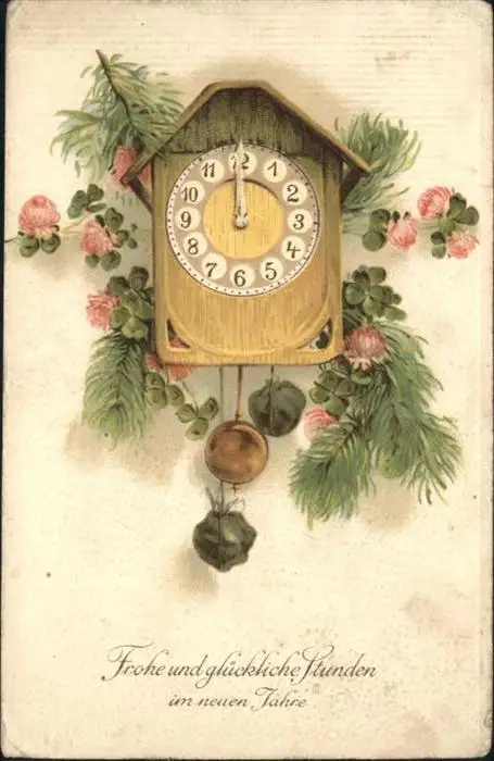Uhren Neujahr Technik postalisch gelaufen bis 1920 Praegedruckkarte