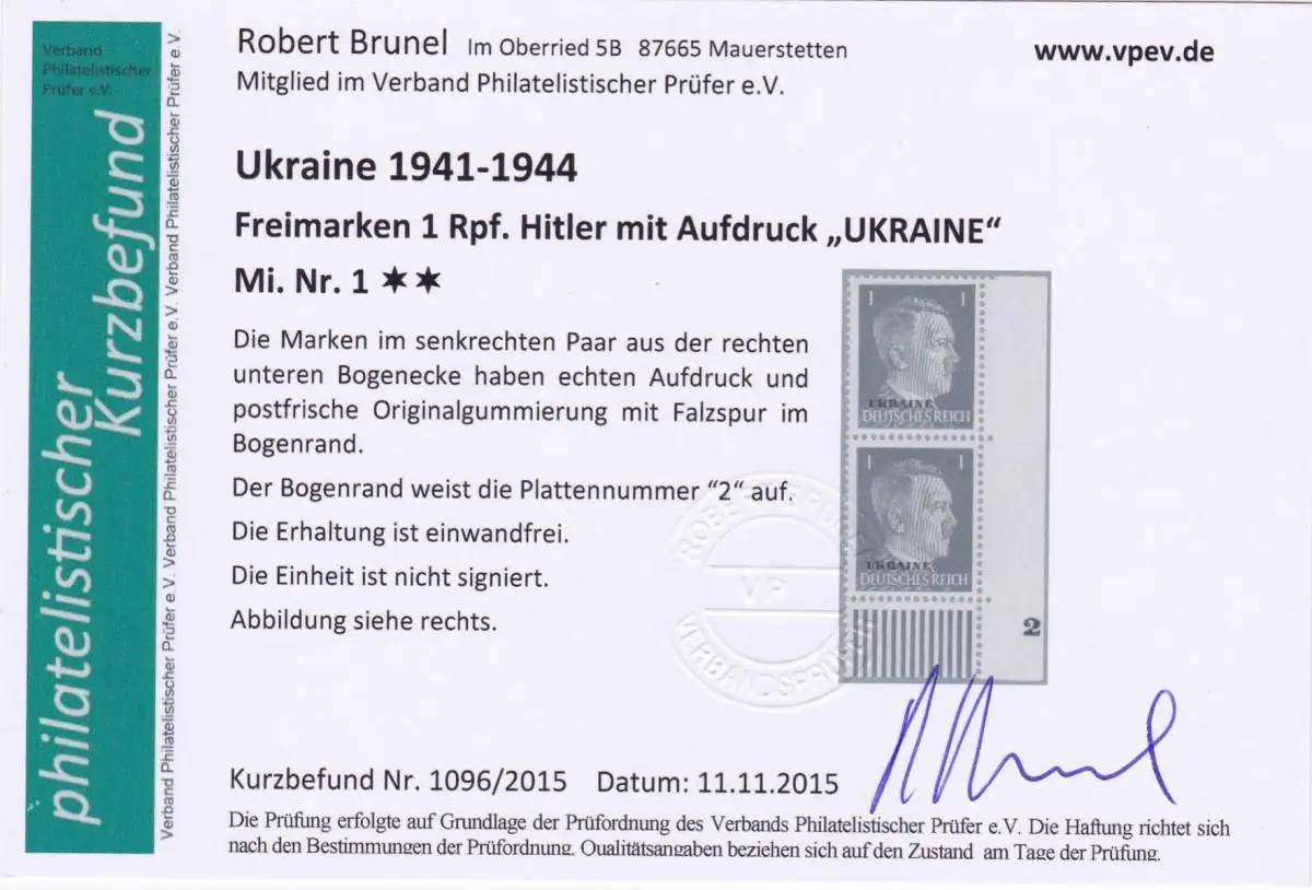Ukraine: MiNr. 1 und 3, postfrisch je mit Plattennummer