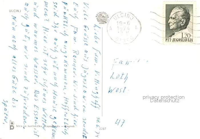 Ulcinj Fliegeraufnahme Ulcinj postalisch gelaufen 1974 Erhaltung siehe scans [WerneD78] WernPID7