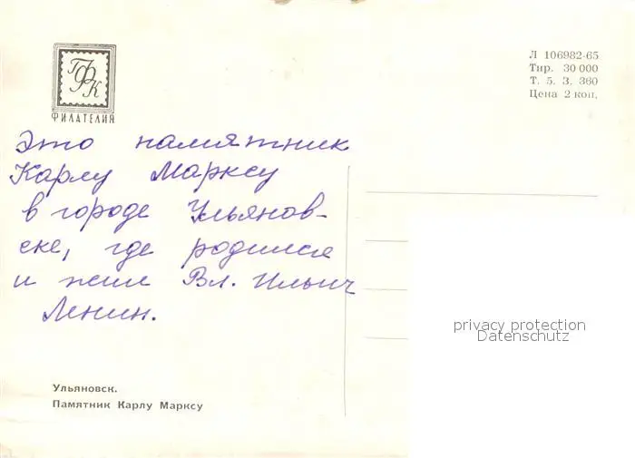 Uljanowsk Karl Marks Denkmal Uljanowsk postalisch nicht gelaufen nach 1965 Erhaltung siehe scans [DarjaD84] DarjID84