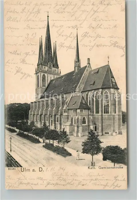 Ulm_Donau Katholische Garnisonkirche Ulm_Donau postalisch gelaufen bis 1920 Erhaltung siehe scans [PaolaD17] PaolPID1
