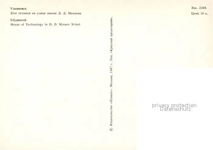 Ulyanovsk House of Technology in DD Minaev Street postalisch nicht gelaufen nach 1965 Erhaltung siehe scans [WerneD78] WernPID7