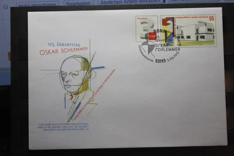 Umschlag mit Sonderwertstempel; USo 302; Oskar Schlemmer; 2013