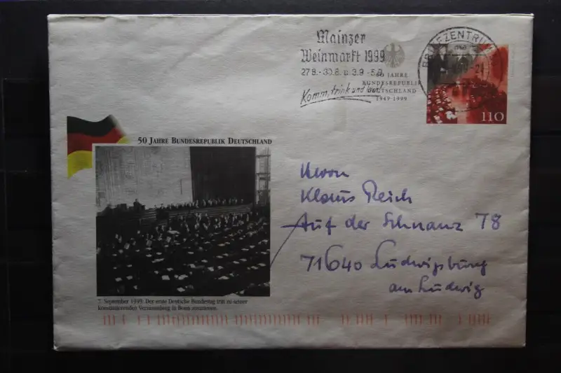 Umschlag mit Sonderwertstempel; USo 9; 50 Jahre BRD