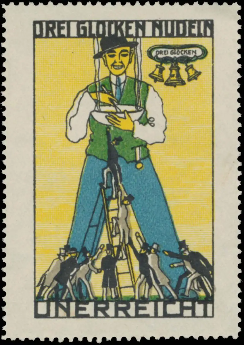 Drei Glocken Nudeln, Größe/Zustand: 6x4 , guter Zustand, Original alte Reklamemarke die seinerzeit für die Werbung benutzt wurde
