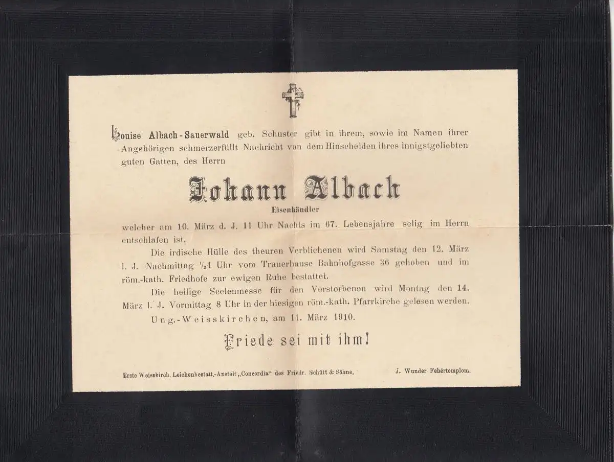 Ungarn: 1910 Trauerbrief nach Wien
