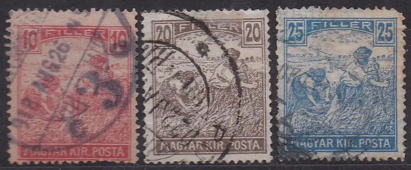 Ungarn, Mi-Nr. 194, 196 + 197 gest., Schnitter