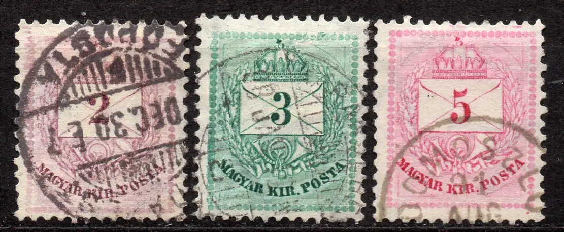 Ungarn, Mi-Nr. 21 aA, 22 A + 23 A gest., Brief mit Wertziffer