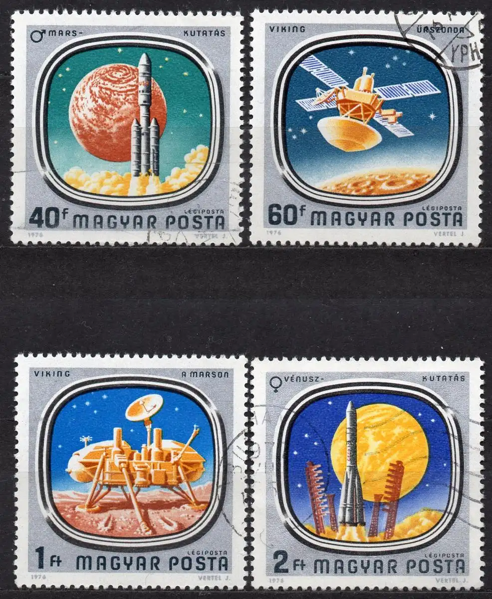 Ungarn, Mi-Nr. 3148, 3149, 3150 + 3151 gest., Weltraumforschung