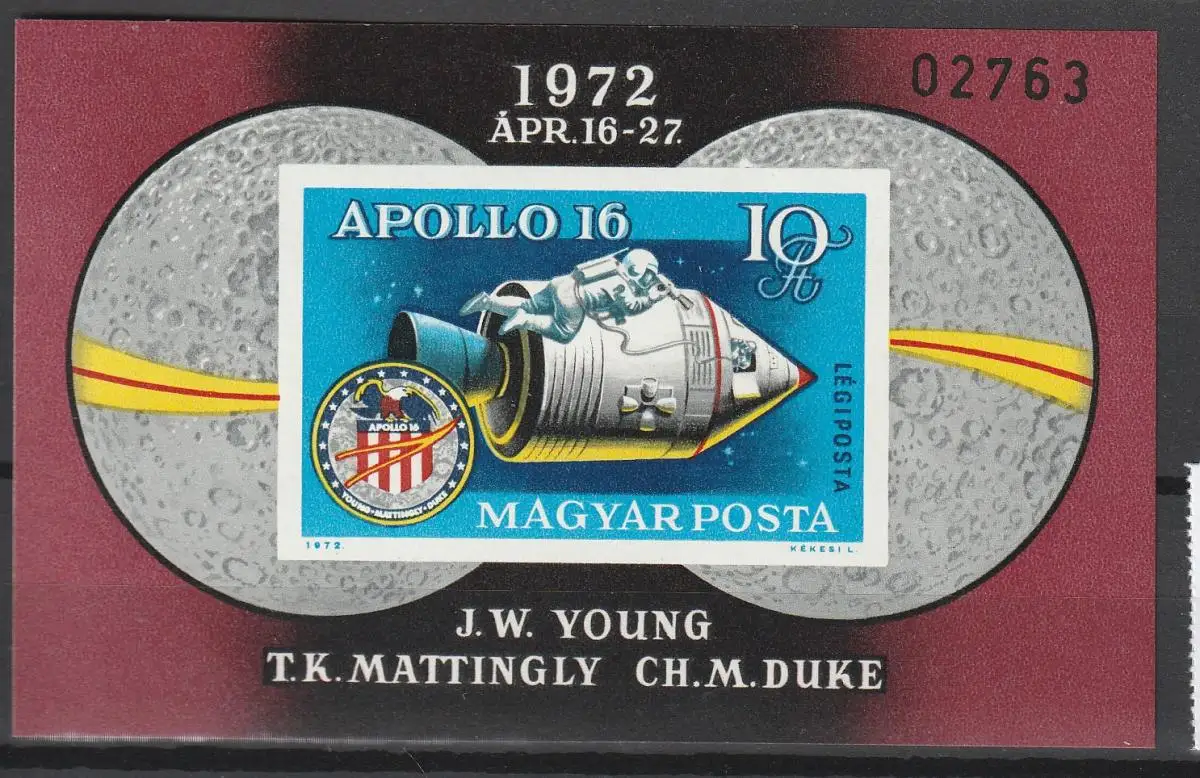 Ungarn geschnitten: Block Apollo 16 (1972), MNH **