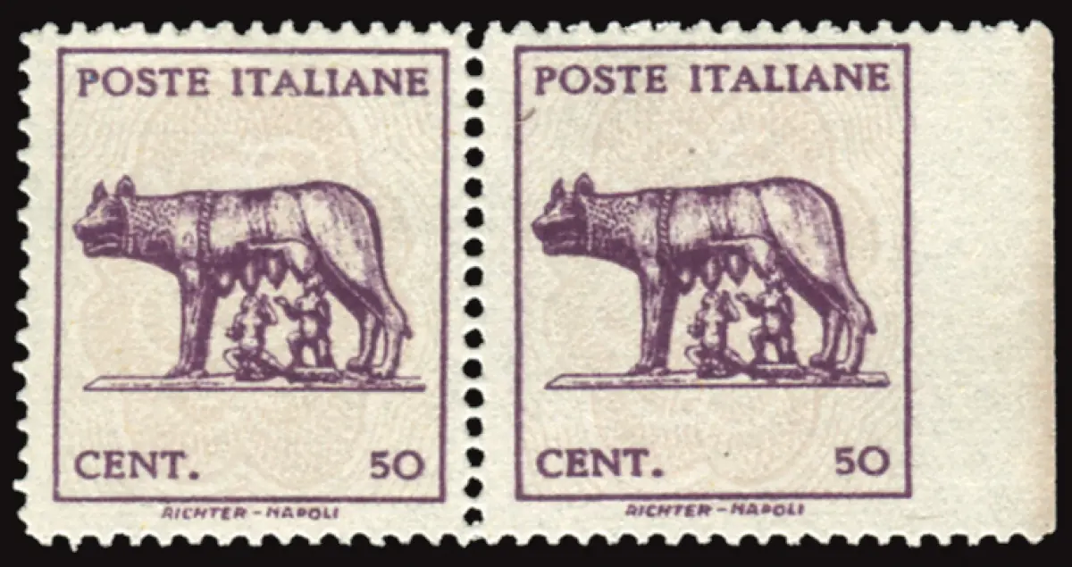 Ungezähnte filigrane Lupe rechts ohne Gummi M - Kapitolinische Lupe ohne Wasserzeichen Nr. 515Ay Paar mit rechts ungezähntem Exemplar rechts b. von f. - Ungewöhnlich - Kat. euro 120 Cod. 247/16