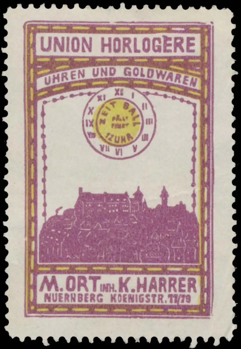 Uhren und Goldwaren, Königstraße 77/79, Inhaber: K. Harrer, Größe/Zustand: 5x4 , guter Zustand, Original alte Reklamemarke die seinerzeit für die Werbung benutzt wurde