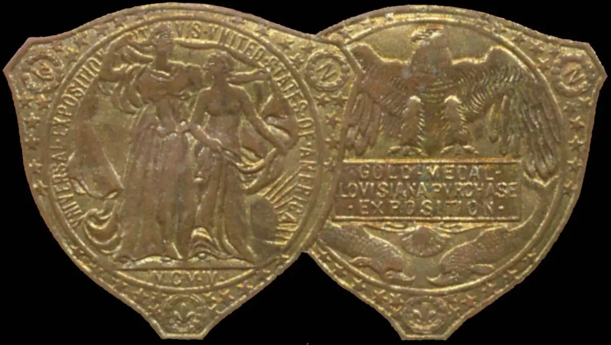 Goldene Medaille, USA, Größe/Zustand: 3x5 , leicht beschädigt, Original alte Reklamemarke die seinerzeit für die Werbung benutzt wurde