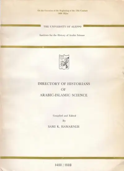 University of Aleppo, IHAS Institute for the history of Arabic science. - comiled and edited by Sami K. Hamarneh: Directory of historians of arabic-islamic science. On the occasion of the beginning of the fifteenth century 1400 Hijrn. 1400 / 1980. - from