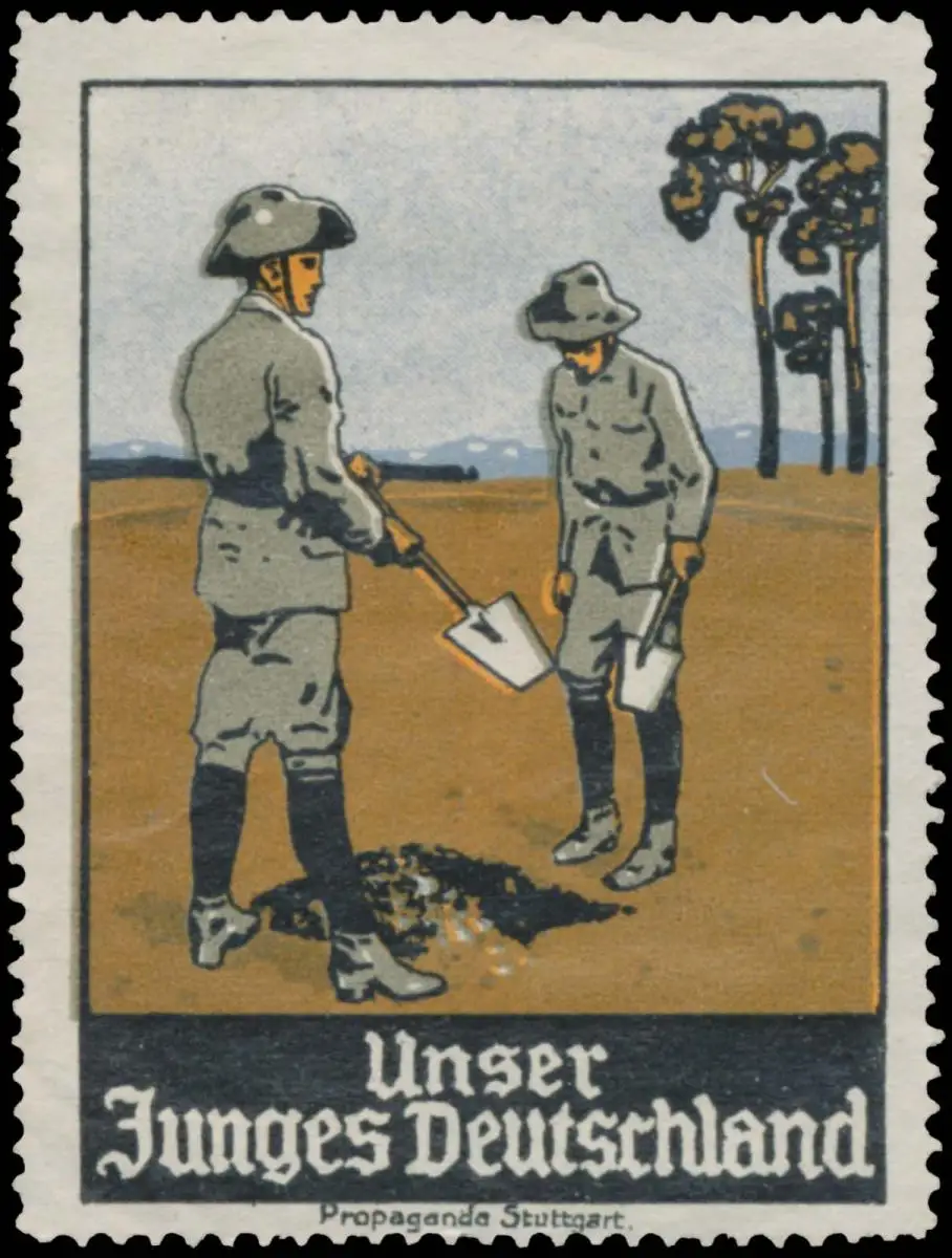 Pfadfinder graben ein Loch, Größe/Zustand: 6x4 , guter Zustand, Original alte Reklamemarke die seinerzeit für die Werbung benutzt wurde