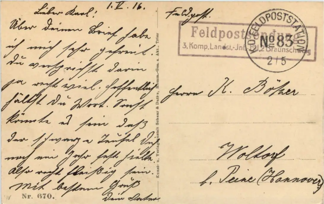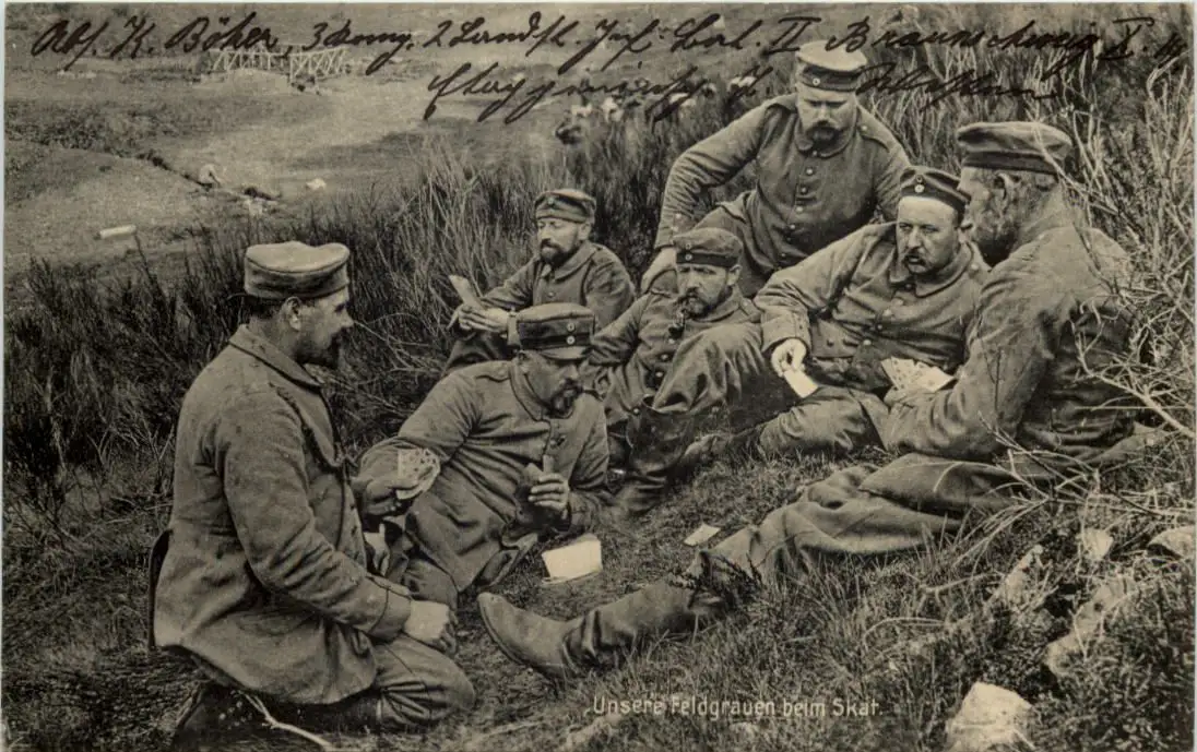 Unsere Feldgrauen beim Skat - Feldpost Landsturm Inf. Braunschweig -620716