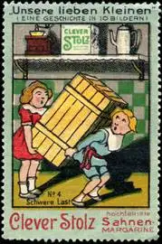 eine Geschichte in 10 Bildern, No. 4, Clever Stolz hochfeinste Sahnen - Margarine, Größe/Zustand: 6x4 , guter Zustand, Original alte Reklamemarke die seinerzeit für die Werbung benutzt wurde
