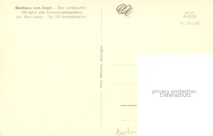 Unterglottertal Gasthaus zum Engel Unterglottertal postalisch nicht gelaufen 1921-1965 Erhaltung siehe scans [KathaD81] Kathoren