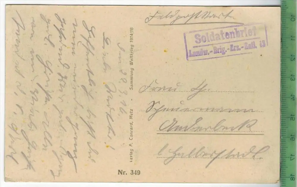 Unterhofen (Secourt)- 1916 - Verlag: F. Conrad, Metz, FELD- POSTKARTE ohne Frankatur, mit Stempel, 22.3.16, Erhaltung: I-II, Karte wird in Klarsichthülle verschickt. (H)