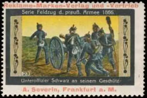 an seinem Geschütz, Serie Feldzug der preußischen Armee 1866, Größe/Zustand: 4x6 , guter Zustand, Original alte Reklamemarke die seinerzeit für die Werbung benutzt wurde